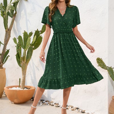 Allegra K Women's Regular Fit Floral Ruffle Trim Tie V Neck Shorts Sleeves Mini Dress