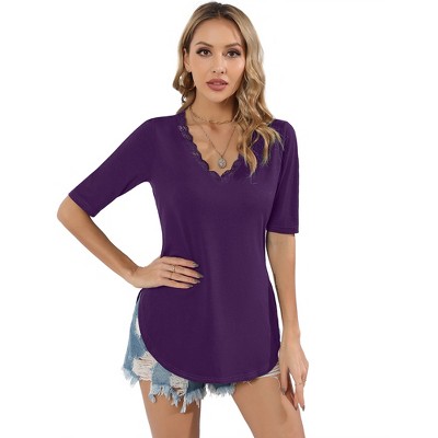 maison Jules Womens Crocheted Trim Basic T-Shirt
