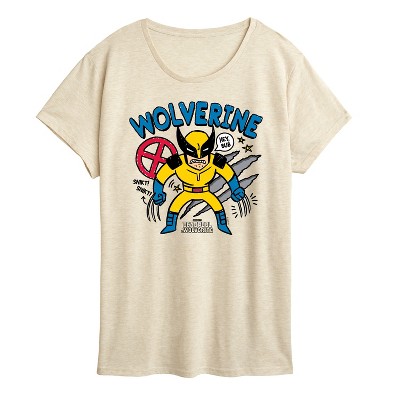 Women's - Marvel - Deadpool & Wolverine Sketch Doodles Lightweight French Terry Wide Neck Long Sleeve Graphic Shirt