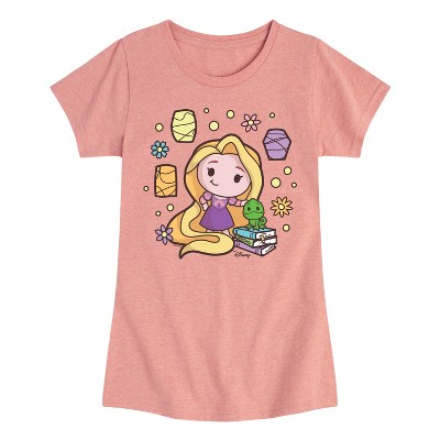 Girls' - Disney Princess - Kawaii Chibi Rapunzel and Pascal Fitted Short Sleeve Graphic T-Shirt