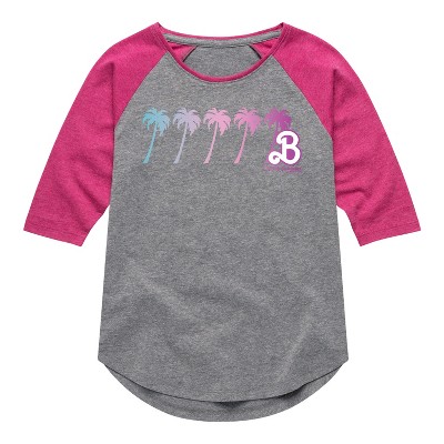 Girls' - Barbie - Palm Trees Shirt Tail Raglan Graphic T-shirt