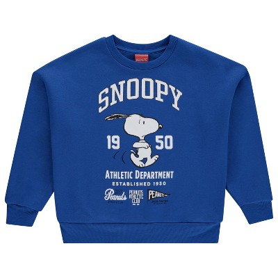 Girls Peanuts Snoopy Fashion Sweatshirt - Peanuts Collegiate Athletic Crewneck Sweatshirt - Linus, Woodstock, Snoopy Sweatshirt (Blue, Large)