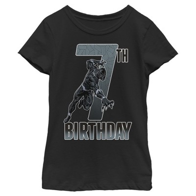 Girl's Marvel Black Panther Action Pose 7th Birthday T-Shirt