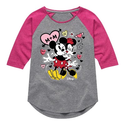 Girls' - Disney - Mickey Minnie Heart Shirt Tail Raglan Graphic T-shirt