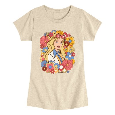 Girls' - Barbie - Floral Portrait Fitted Short Sleeve Graphic T-Shirt