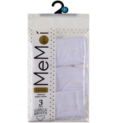 Memoi 3 Pair Girls Ribbed Modal Blend Tag-Free Brief Panties