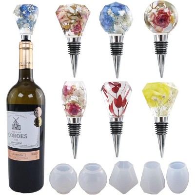JDICTION 10 Pack Resin Casting Molds & Accessories - 5 Wine Stopper Molds + 5 Tools for Soap, Candle & Epoxy Crafting