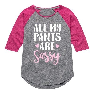 Girls' - Instant Message - All My Pants Are Sassy Shirt Tail Raglan Graphic T-shirt