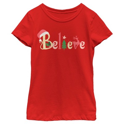 Girl's Lost Gods Believe Christmas Text T-Shirt