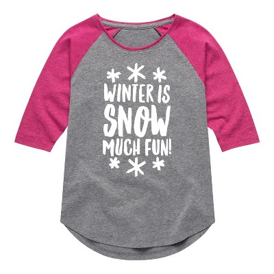 Girls' - Instant Message - Winter Is Snow Much Fun Shirt Tail Raglan Graphic T-shirt