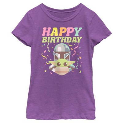 Girl's Star Wars: The Mandalorian Happy Birthday Mando and Grogu T-Shirt