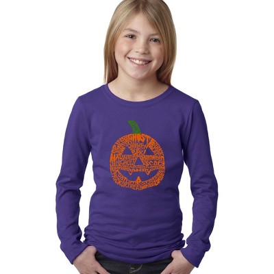 LA Pop Art Girl's Word Art Long Sleeve - Pumpkin
