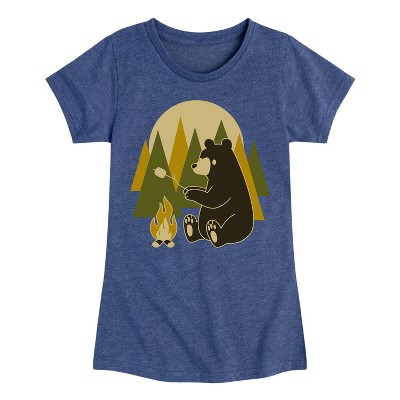 Girls' - Instant Message - Bear Roasting Marshmallows Fitted Short Sleeve Graphic T-Shirt