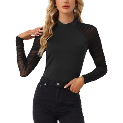 Allegra K Women's Long Sleeve See Through Ruched Blouses