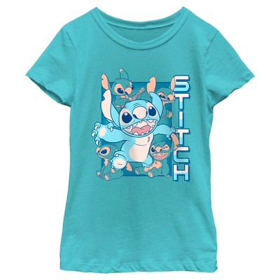 Girl's Lilo & Stitch Blue Square Portrait Stitch T-Shirt