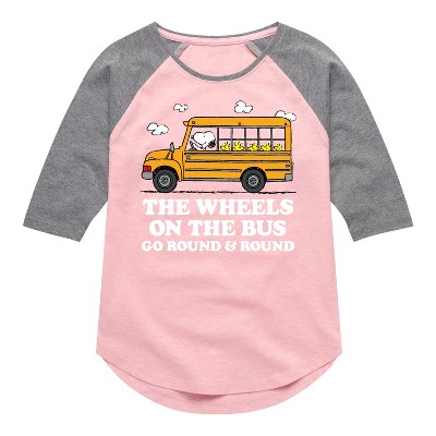 Girls' - Peanuts - Wheels On The Bus Shirt Tail Raglan Graphic T-shirt