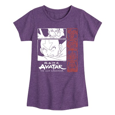Girls' - Avatar - The Last Airbender - Katara and Aang Grid Fitted Short Sleeve Graphic T-Shirt