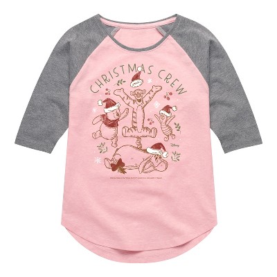 Girls' - Winnie the Pooh - Tigger, Pooh, Eeyore, & Piglet Christmas Crew Shirt Tail Raglan Graphic T-shirt