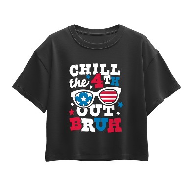 Girls' - Instant Message - Chill the 4Th Out Bruh Short Sleeve Boxy Graphic T-Shirt