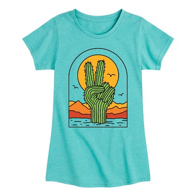 Girls' - Instant Message - Cactus Peace Sign Fitted Short Sleeve Graphic T-Shirt