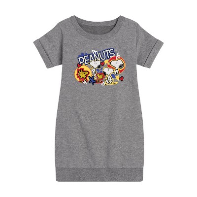 Girls' - Peanuts - Snoopy Woodstock Graphic Short Sleeve Fleece Dress