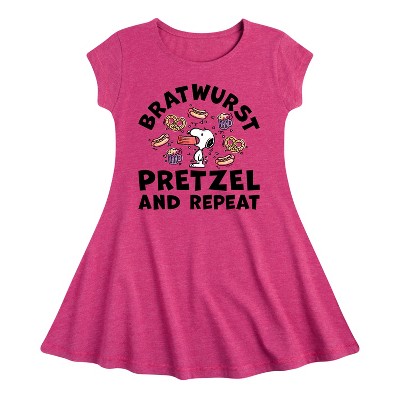 Girls' - Peanuts - Bratwurst Pretzel And Repeat Snoopy Fit & Flair Cap Sleeve Graphic Dress