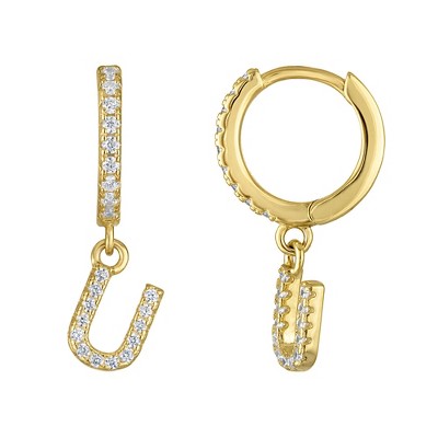 Junior Jewels 14K Gold Over Silver Cubic Zirconia Initials Drop Earrings
