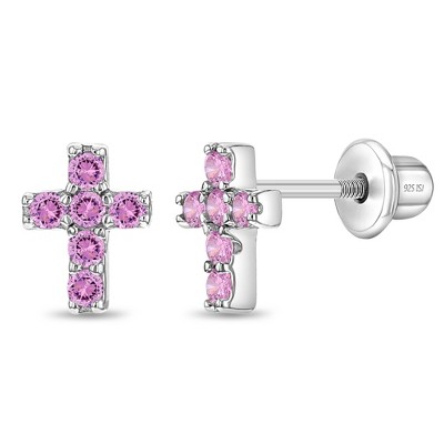 Girl's The Perfect Cross Screw Back Sterling Silver Earrings - In Season Jewelry