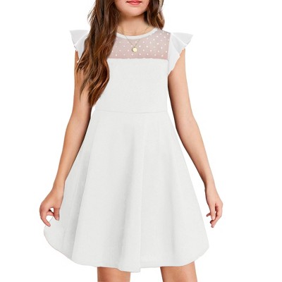 Arshiner Girl's Contrast Mesh Puff Long Sleeve High Waist A Line Short Dress with Pockets for 6-13 Years