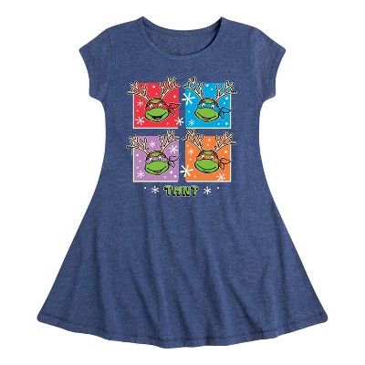 Girls' - Teenage Mutant Ninja Turtles - Reindeer Turtles Fit & Flair Cap Sleeve Graphic Dress
