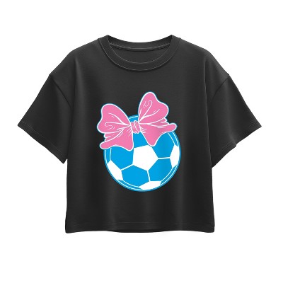 Girls' - Instant Message - Soccer Ball, Bow Short Sleeve Boxy Graphic T-Shirt