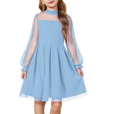Arshiner Girls Dresses Contrast Mesh Puff Long Sleeve Mock Neck Formal Party A Line Short Tulle Dress