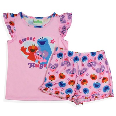 Sesame Street Pajamas Toddler Girls Sweet Hugs Ruffled Short Sleep Set