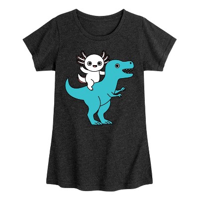Girls' - Instant Message - Axolotl Riding A Dinosaur Fitted Short Sleeve Graphic T-Shirt