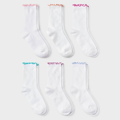Girls' 6pk Lettuce Edge Crew Socks - art class™ White
