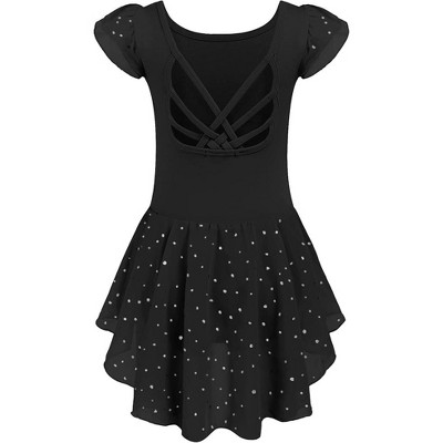 Arshiner Girls Shiny Ruffle Sleeve Ballet Leotard with Skirt Criss-Cross Back Dance Dresses