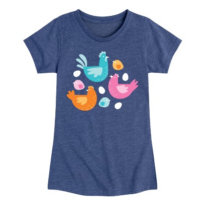 Girls' - Instant Message - Colorful Chickens Fitted Short Sleeve Graphic T-Shirt