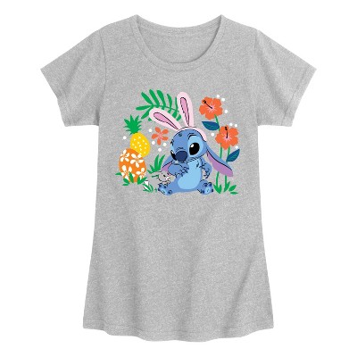 Girls' - Lilo & Stitch - Stitch Bunny Flowers Fitted Short Sleeve Graphic T-Shirt