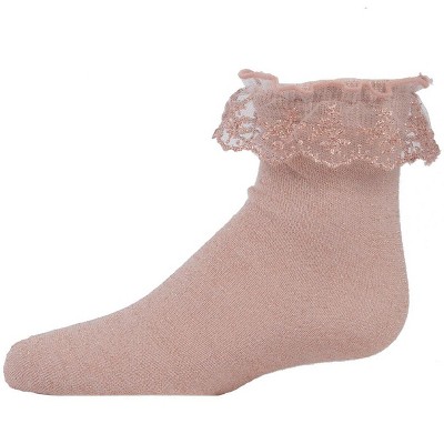 Memoi Girls' Step and Shimmer Ruffle Anklet Socks