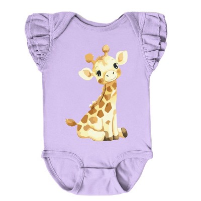 The Juniper Shop Watercolor Giraffe Flutter Sleeve Bodysuit