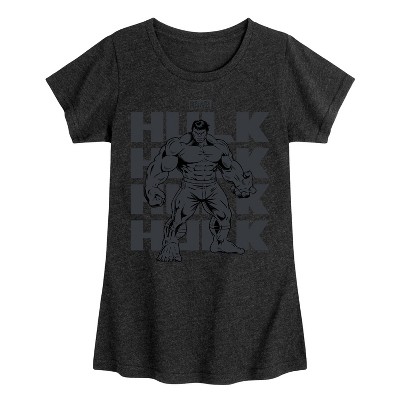 Girls' - Marvel - Hulk Monochrome Fitted Short Sleeve Graphic T-Shirt