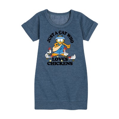 Girls' - Garfield - Just A Cat Who Loves Chickens Graphic Short Sleeve Fleece Dress
