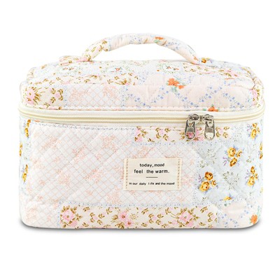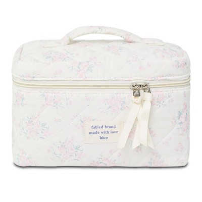 Narwey Makeup Bag, Floral Quilted Cosmetic Bag, Large Travel Aesthetic Make up Bag, Cute Coquette Toiletry Bag for Women Girls