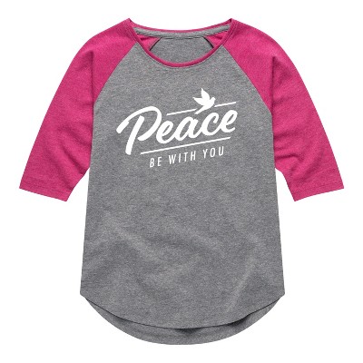 Girls' - Instant Message - Peace Be With You Shirt Tail Raglan Graphic T-shirt