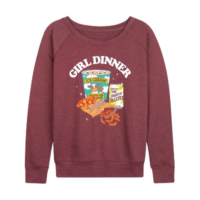 Women's - Instant Message - Girl Dinner Junk Food Lightweight French Terry Wide Neck Long Sleeve Graphic Shirt
