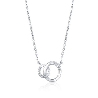Bella Silver Sterling Silver, Double Oval CZ Necklace - Silver - 16+2 Inch