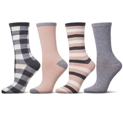Memoi Women's 4 Pair Pack Buffalo Check Buttersoft Crew Socks Blush 9-11