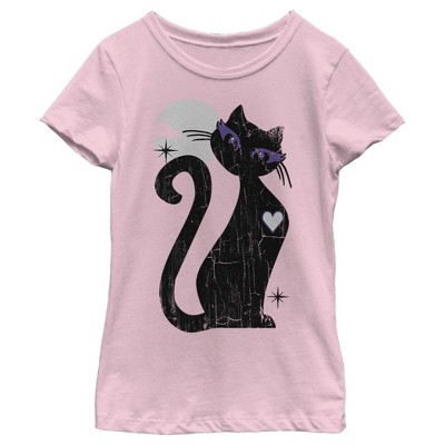 Girl's Lost Gods Halloween Full Moon Cat Heart T-Shirt