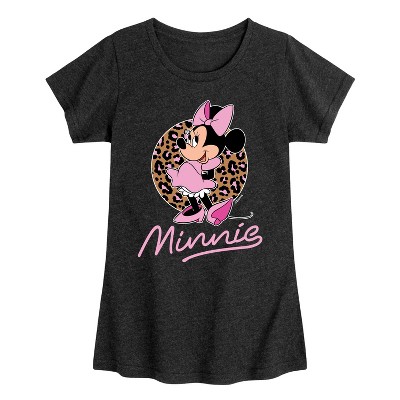 Girls' - Disney - Minnie Leopard Print Fitted Short Sleeve Graphic T-Shirt