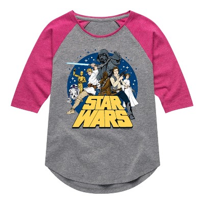 Girls' - Star Wars - Luke Skywalker and Friends Retro Shirt Tail Raglan Graphic T-shirt